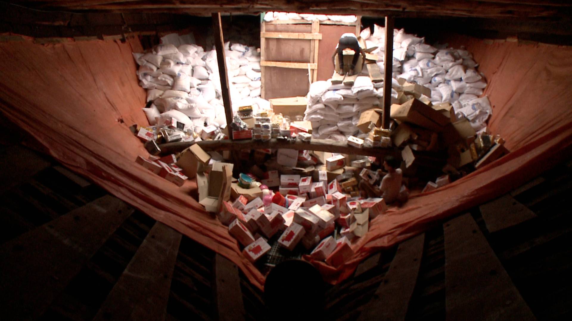 Interior of an Iranian Bari unloading salt and household goods in Dubai, from From Gulf to Gulf to Gulf.